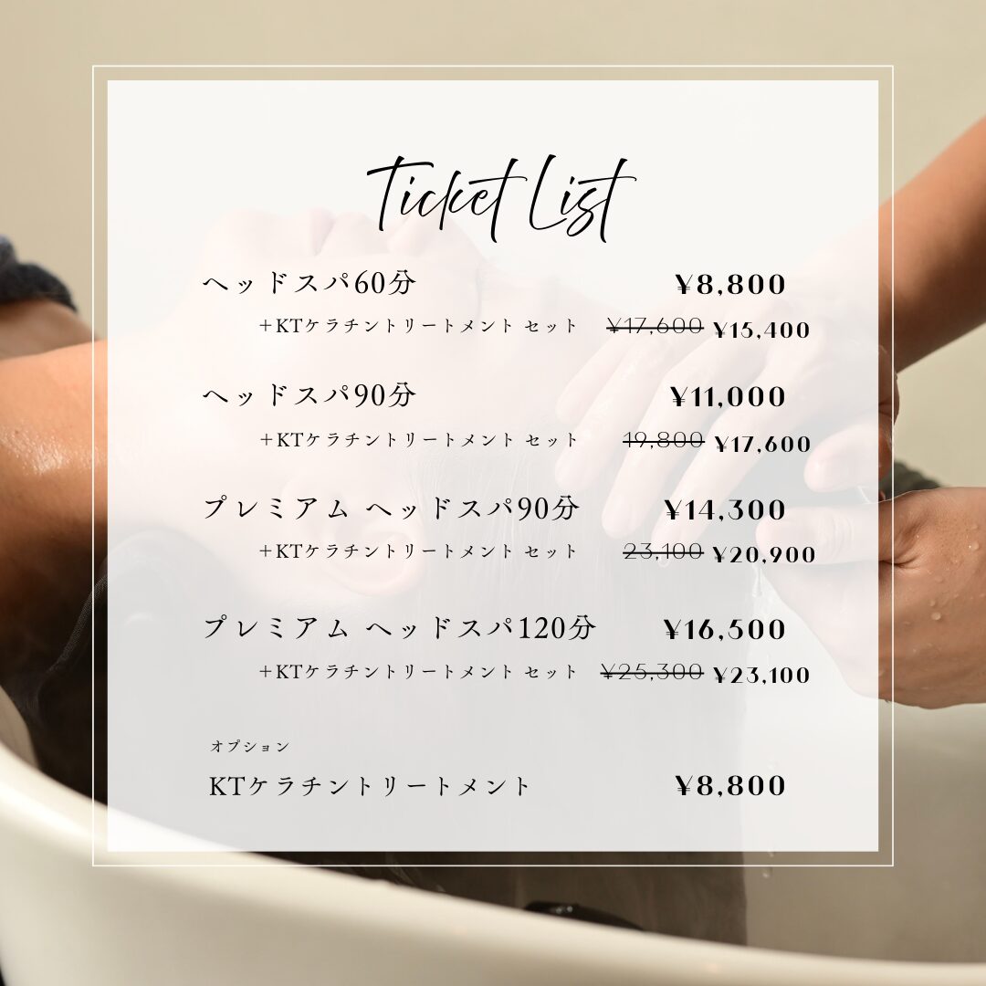 | 商品名 | ツボミ プレミアムヘッドスパ120分+KTケラチントリートメント チケット |